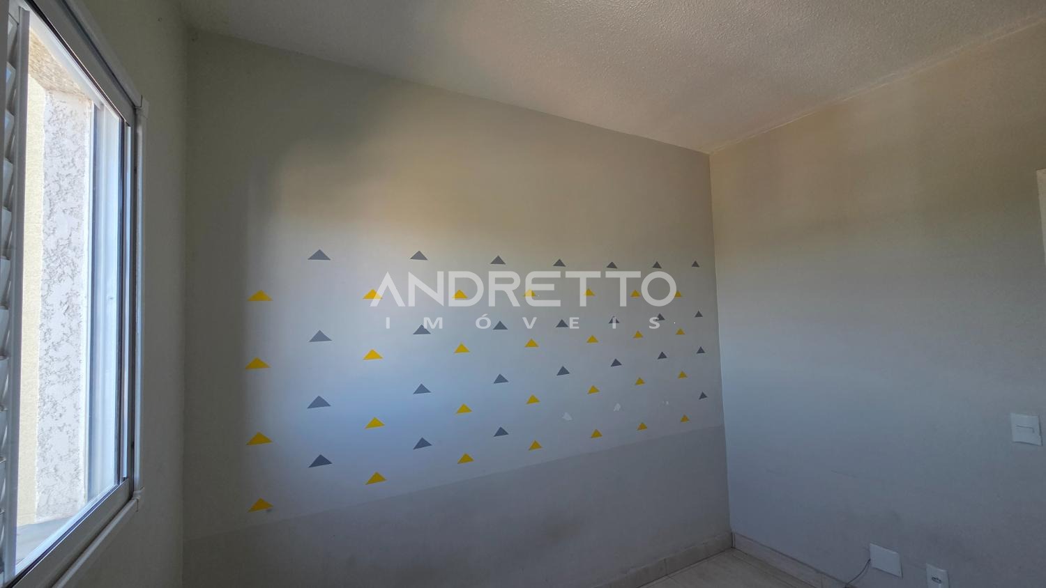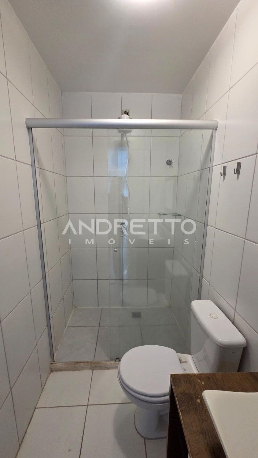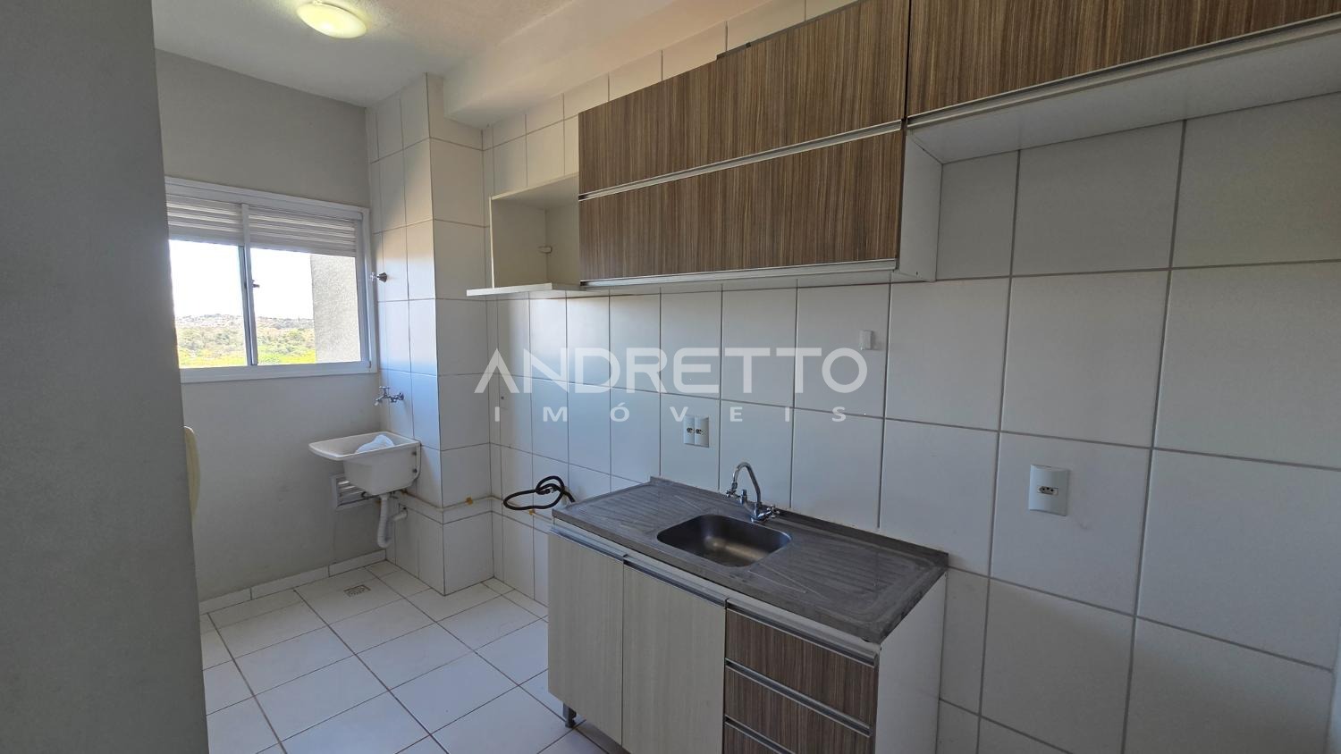 Com 2 dormitórios, sala, cozinha com área de serviço e banheiro social.
