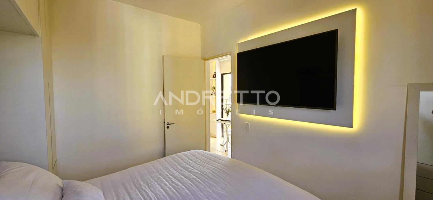 O quarto principal transmite conforto e sofisticação, ideal para quem valoriza bem-estar e bom gosto.