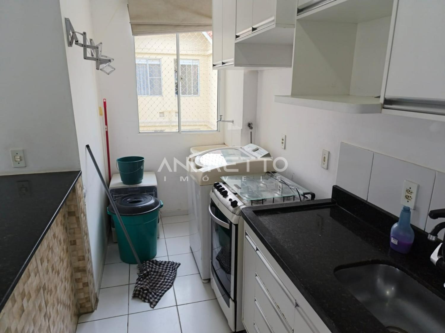 Apartamento de 52 m² de 3 quartos com armários, um banheiro, ampla sala, cozinha com planejados e lavanderia