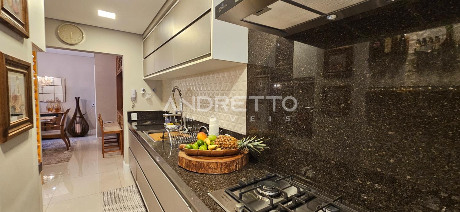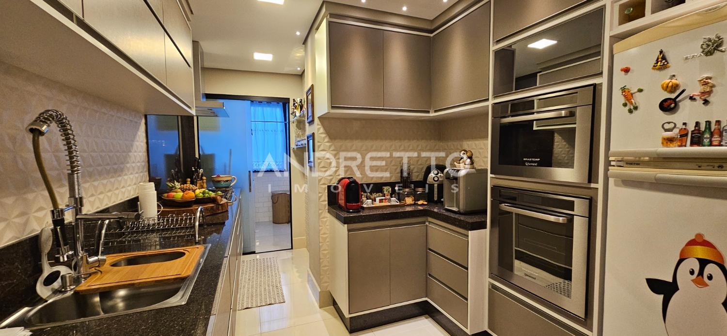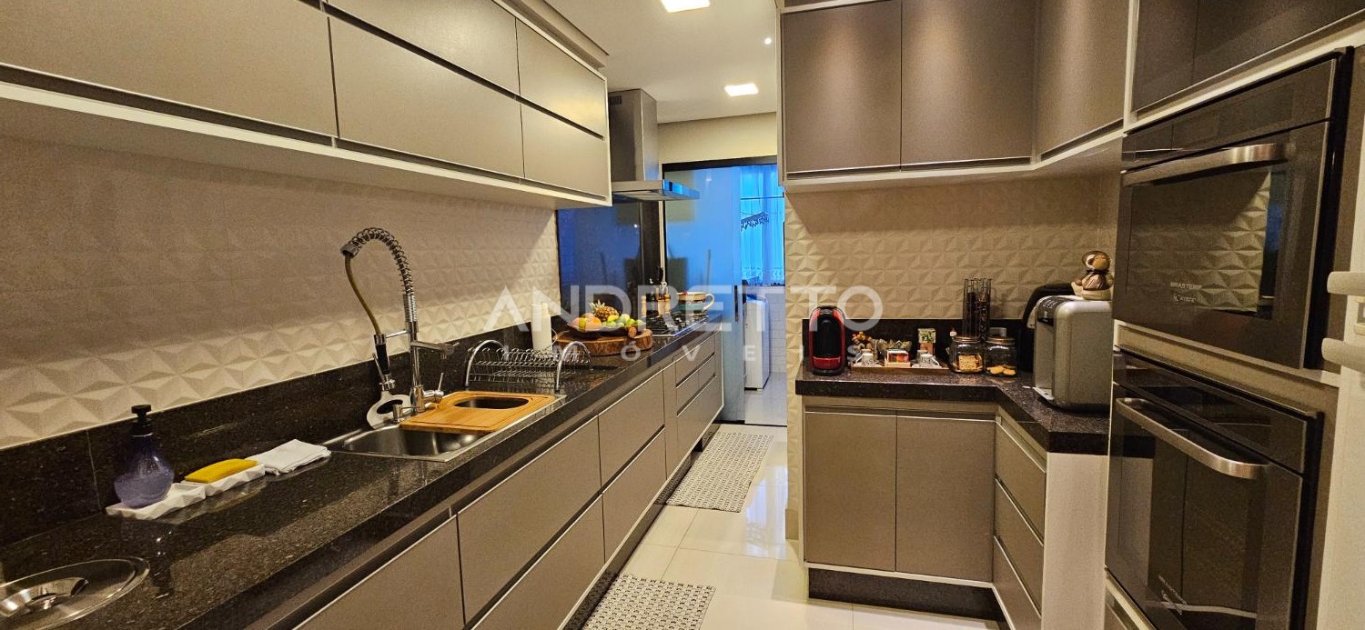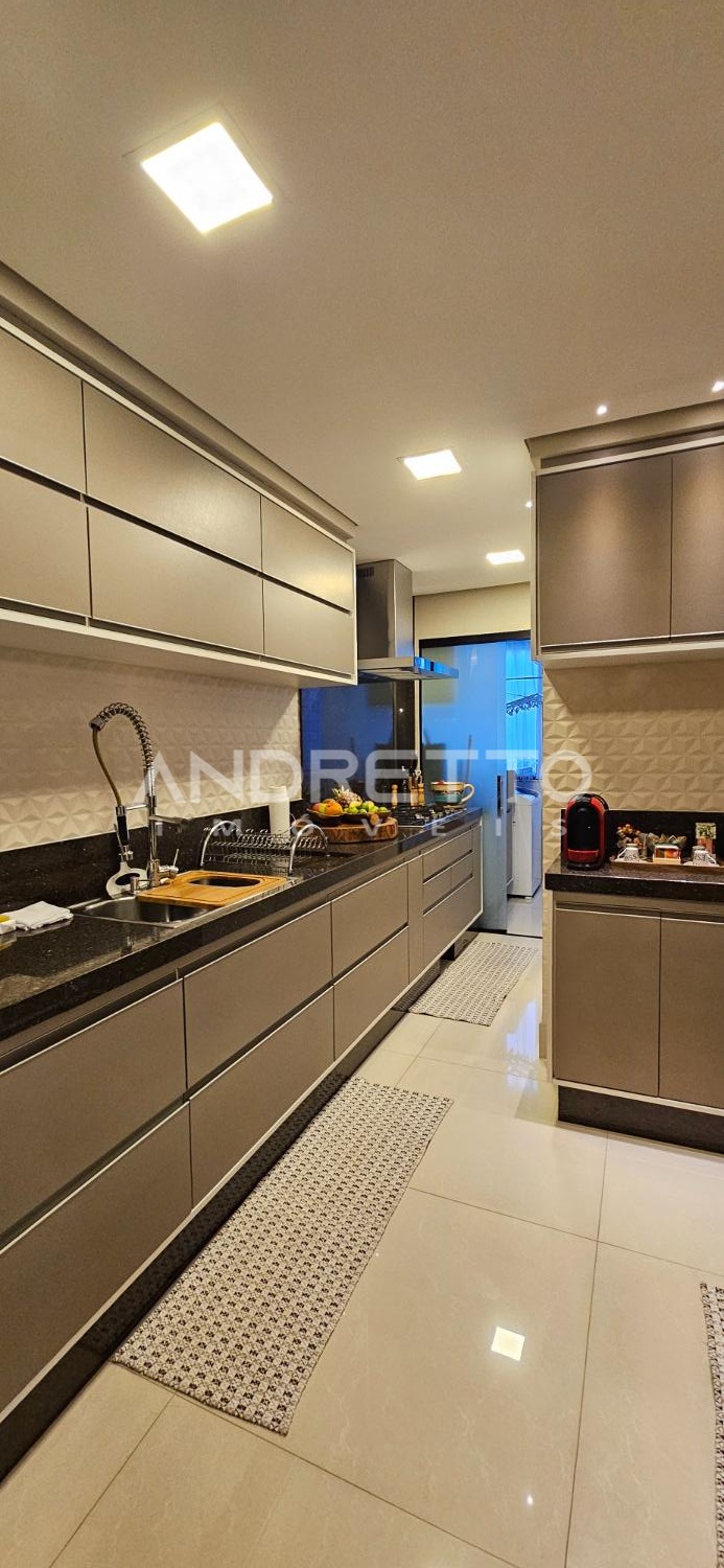 Ambientes todos planejados. Na cozinha, possui torre quente da linha Gourmand da Brastemp.