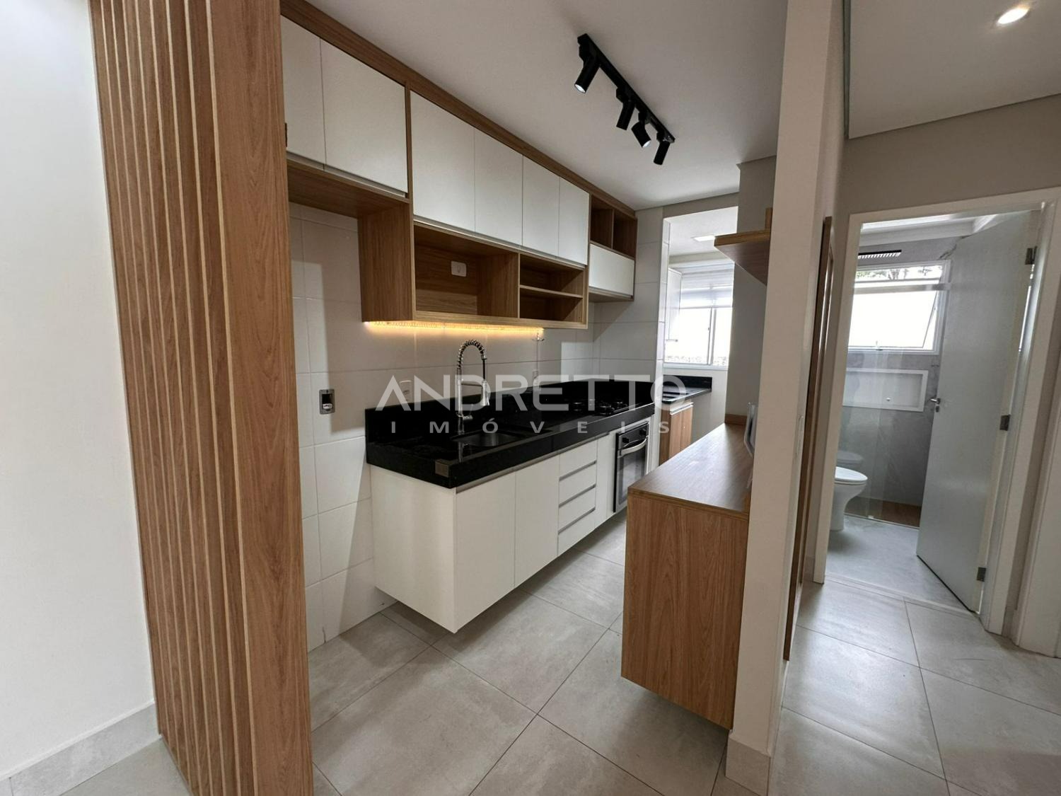 Apartamento de 48 m² de dois quartos todos com ventiladores de teto. ampla sala com sacada, um banheiro, cozinha moderna e lavanderia, todos os cômodos ricos em armários.