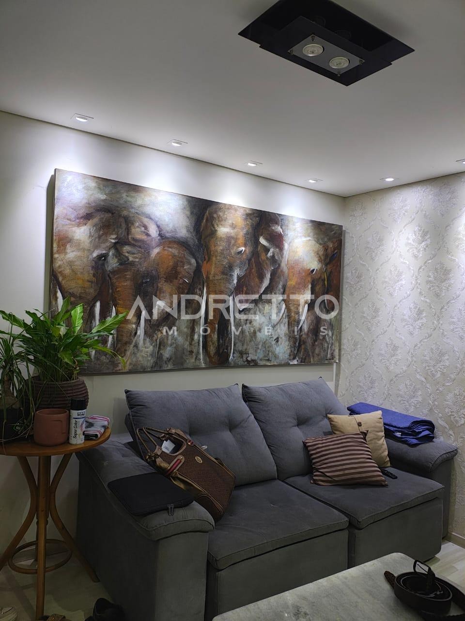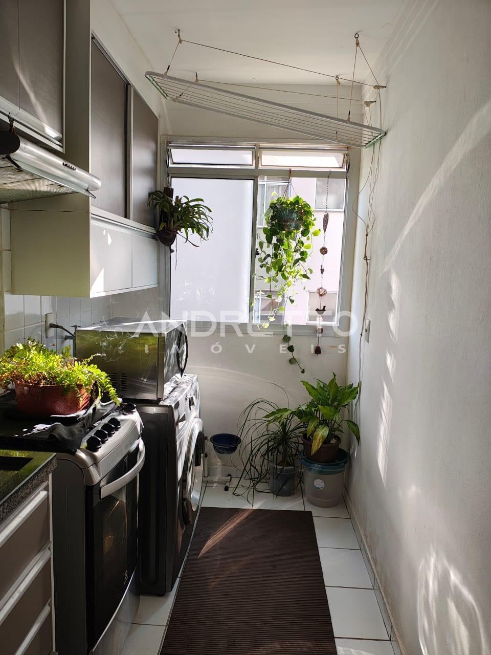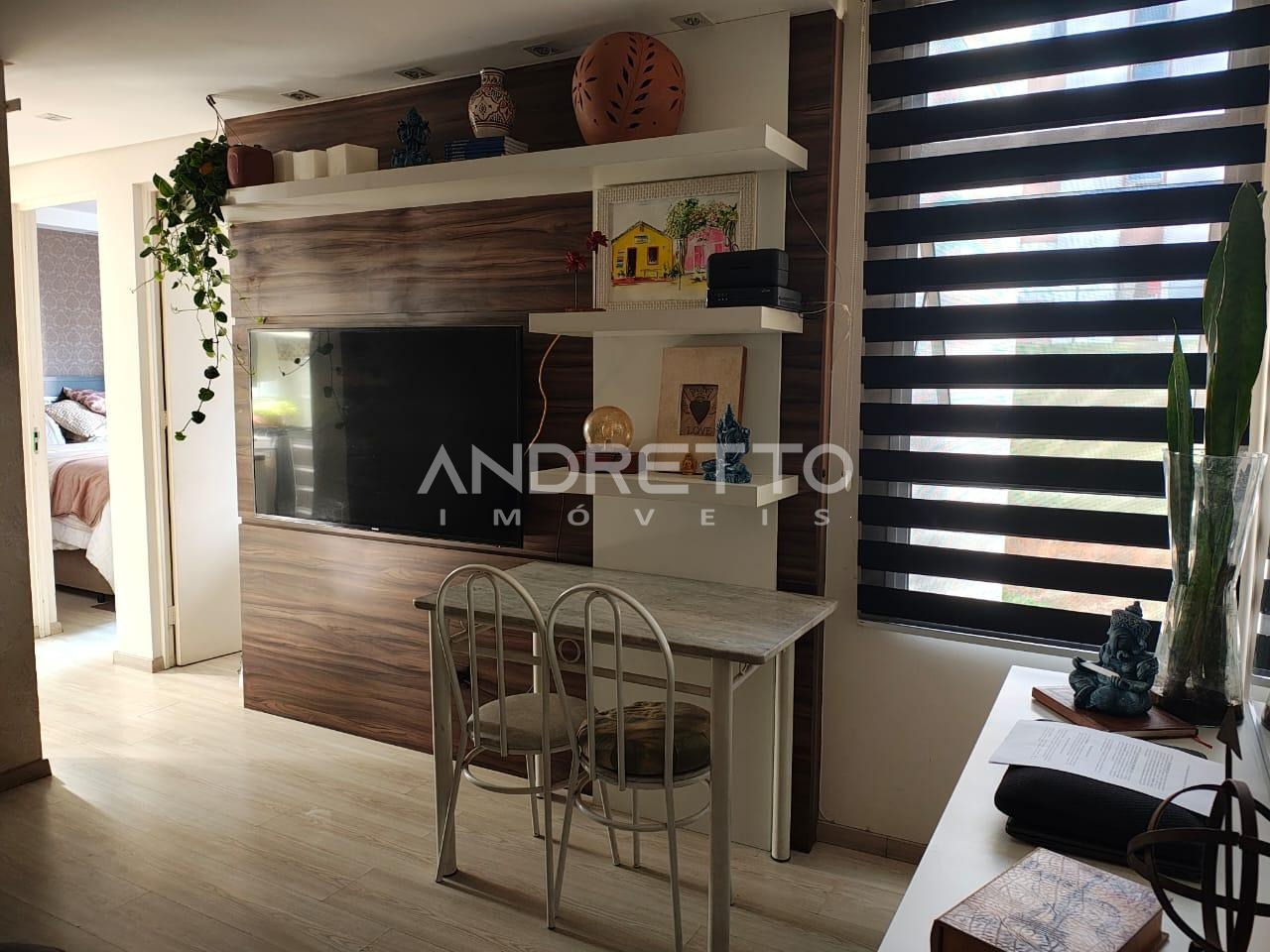 Localizado no primeiro andar, conta com dois dormitórios, sendo um com armário planejado, sala com painel de TV, cozinha planejada, área de serviço e banheiro social.