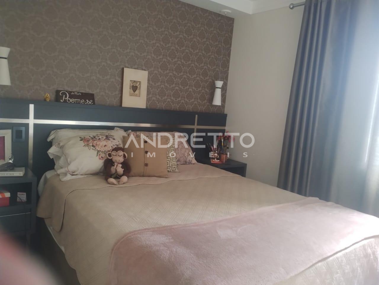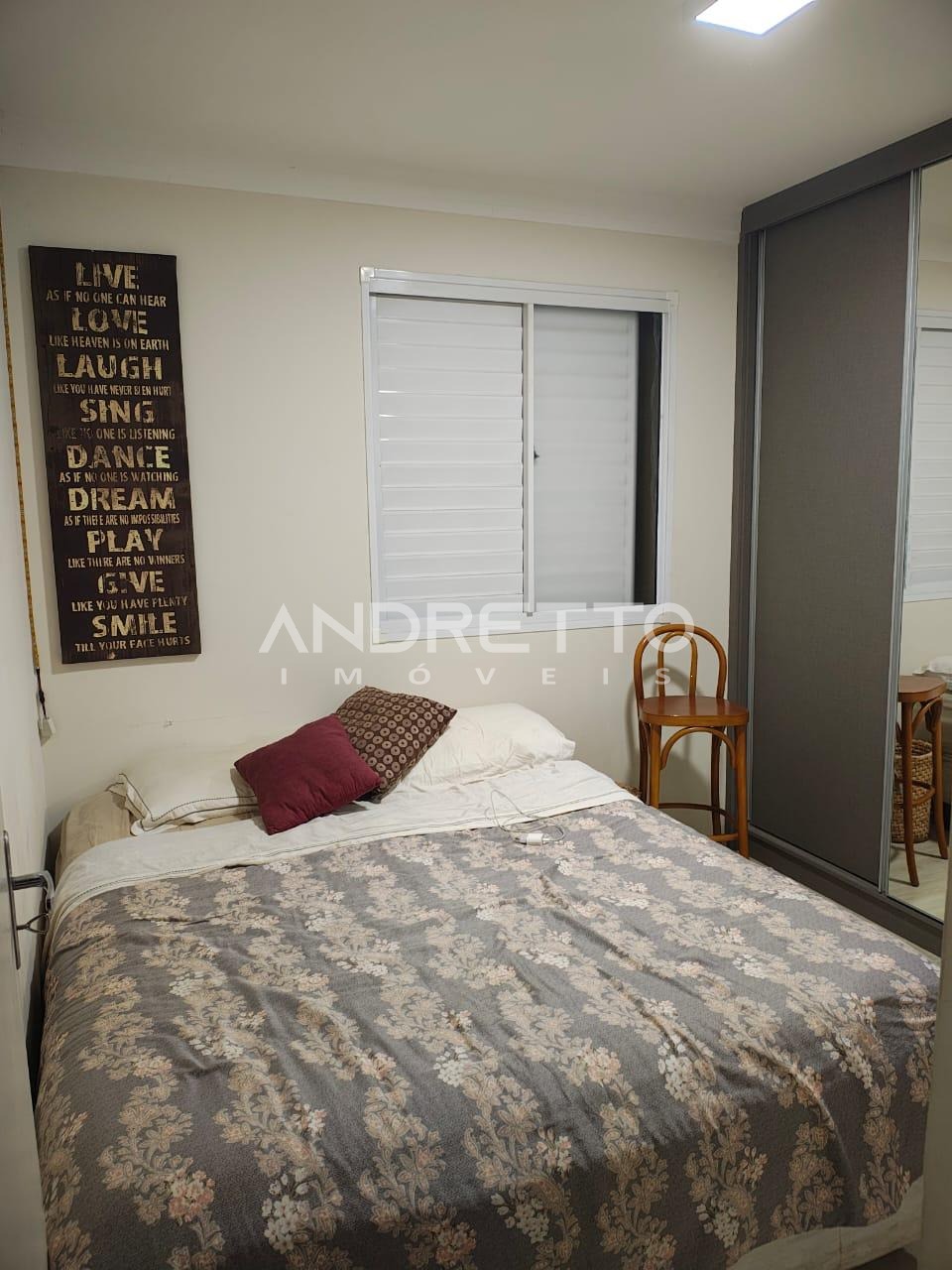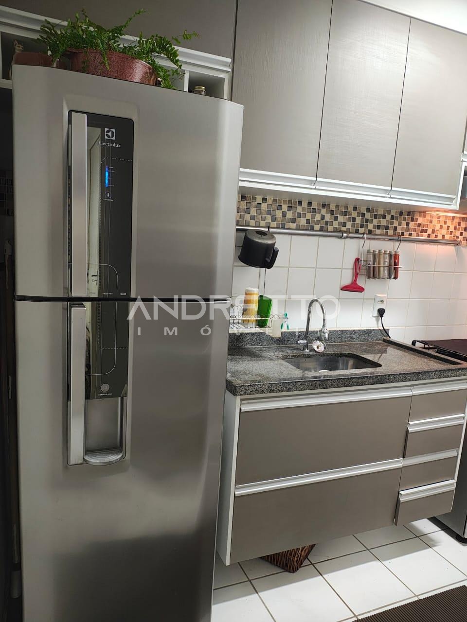 Localizado no primeiro andar, conta com dois dormitórios, sendo um com armário planejado, sala com painel de TV, cozinha planejada, área de serviço e banheiro social.