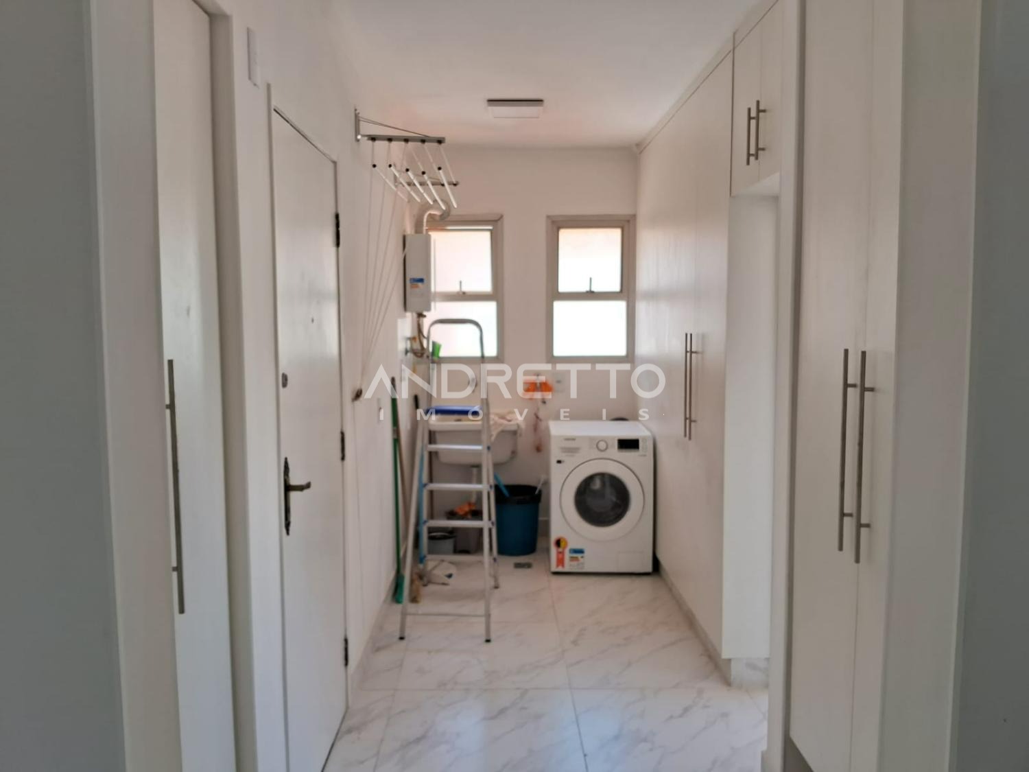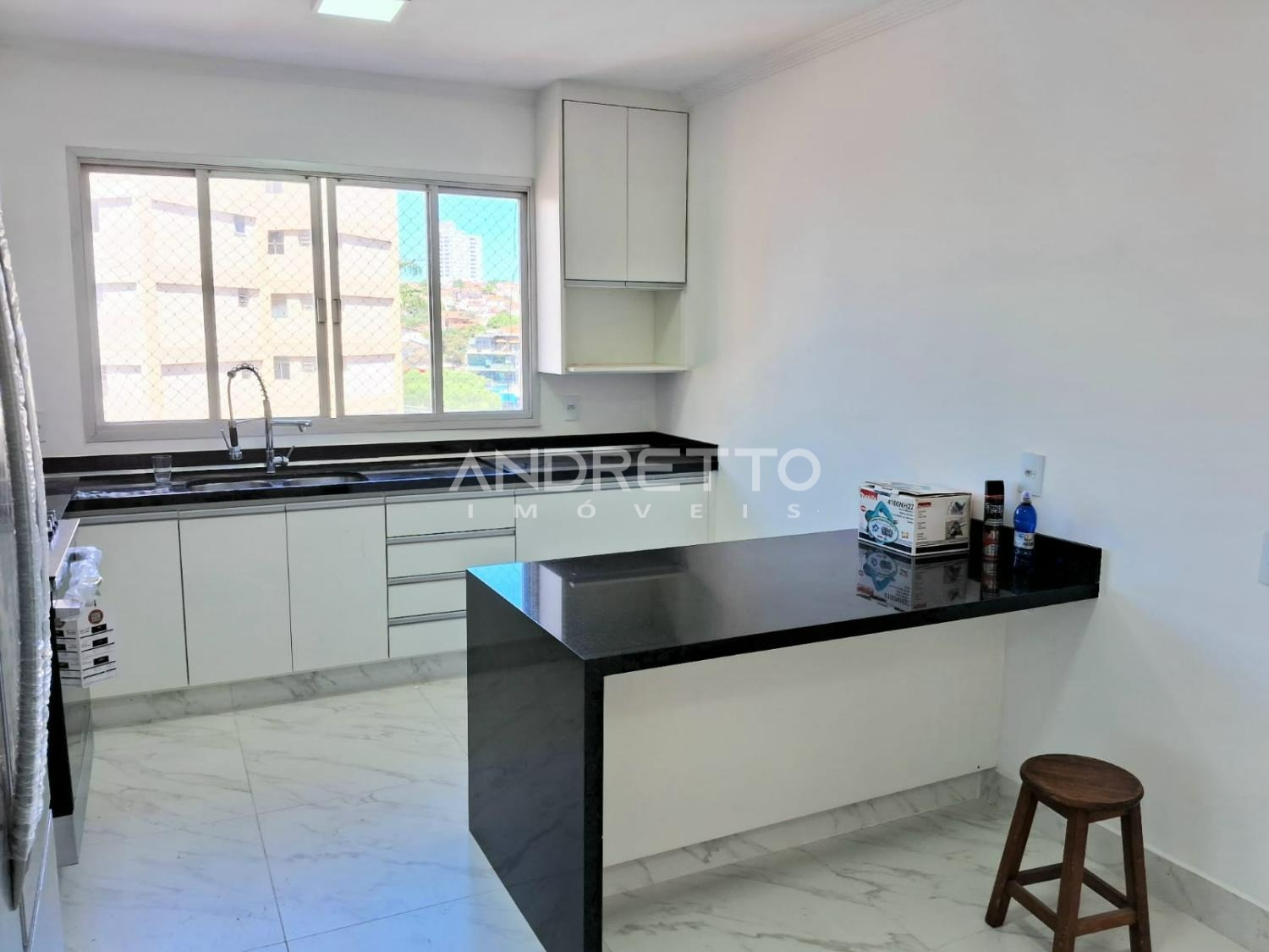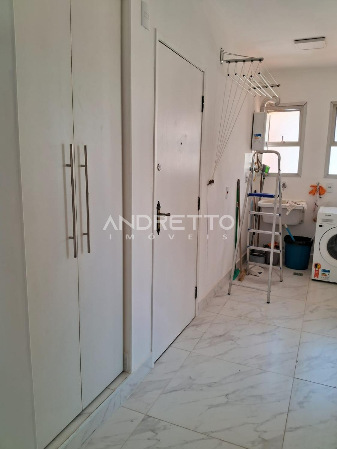 O apartamento conta com ricos armários, forno, depurador e geladeira, uma mesa em ilha muito linda, lavanderia com máquina de lavar e varal.