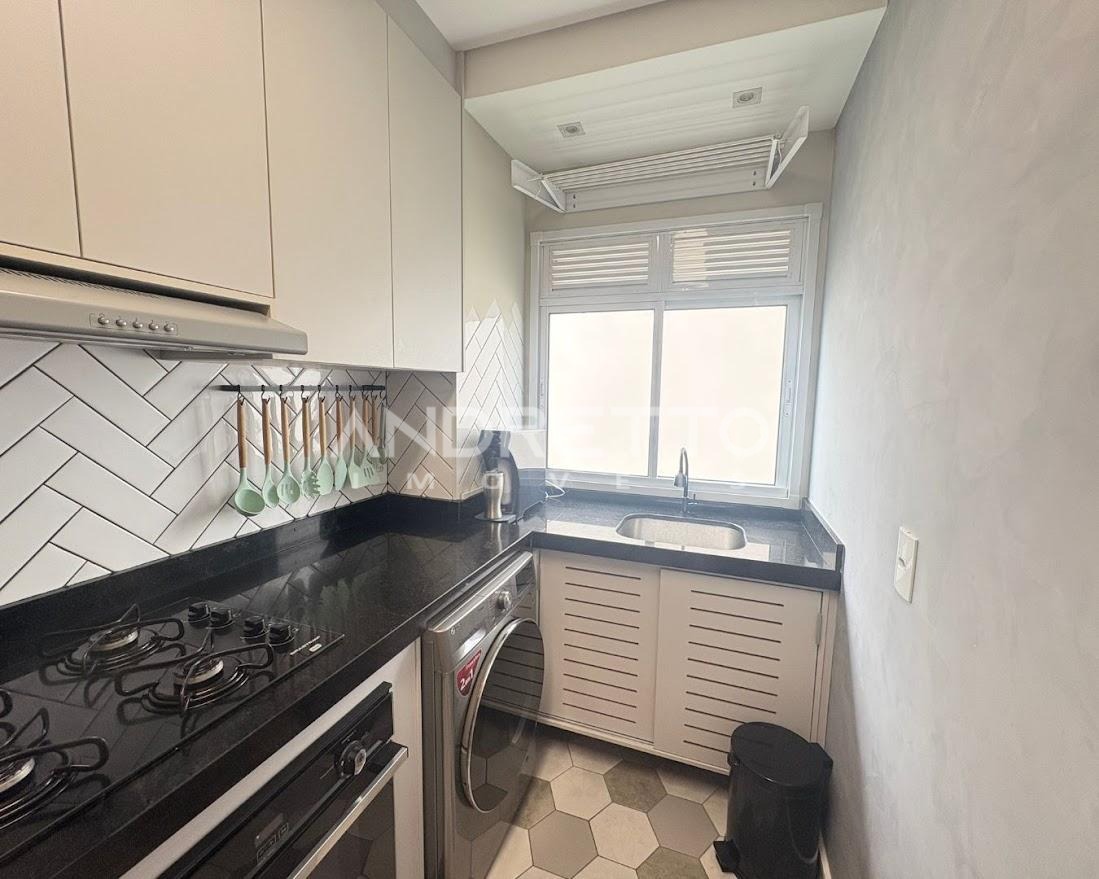 A cozinha foi planejada para unir funcionalidade e praticidade, com armários sob medida e eletrodomésticos já instalados: cooktop, forno e micro-ondas, facilitando o dia a dia com muito estilo.