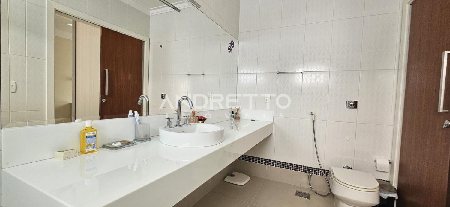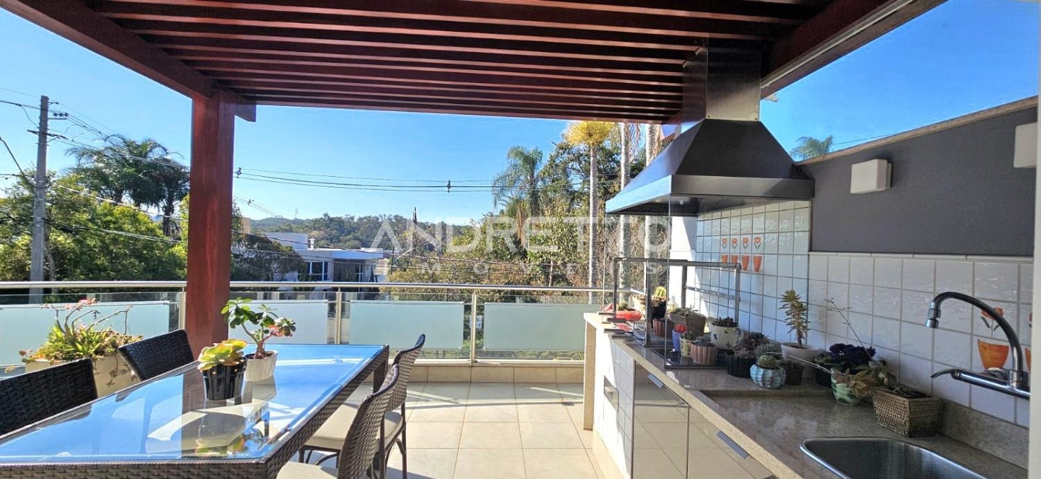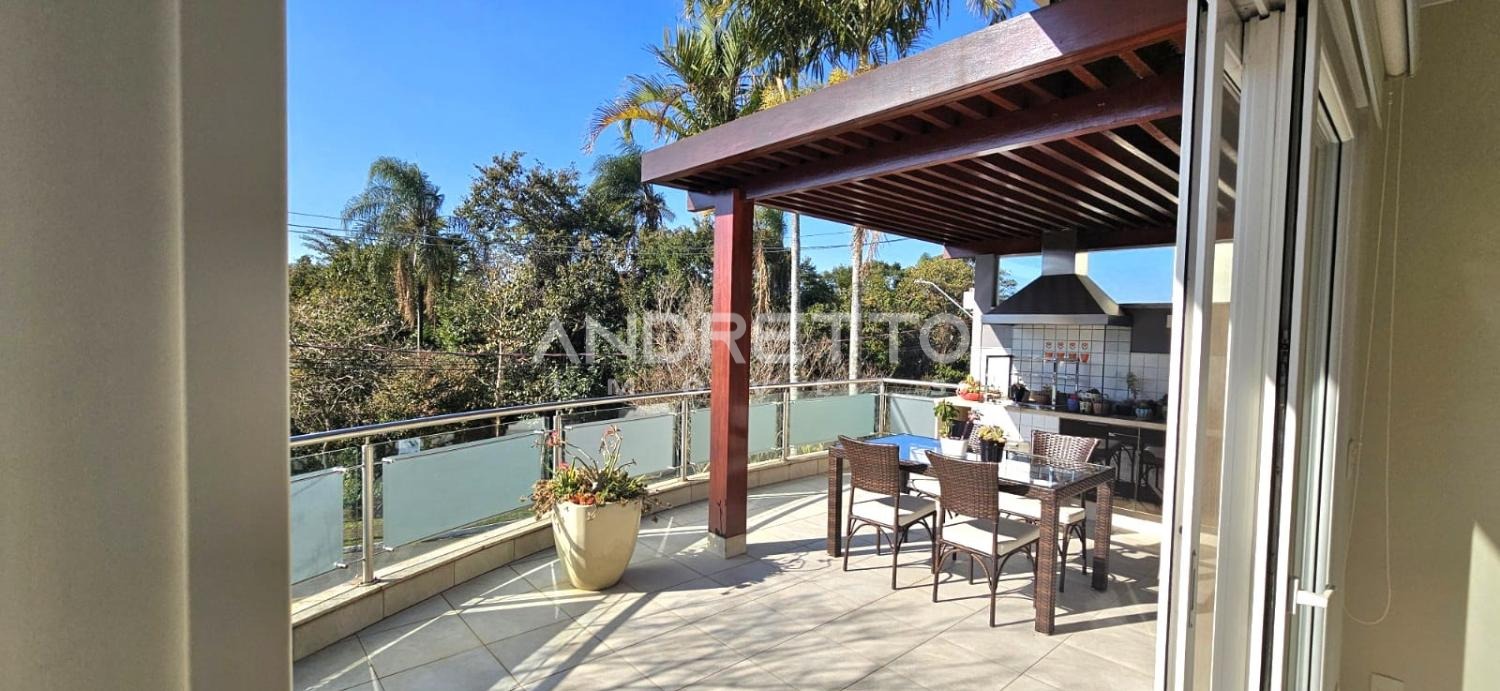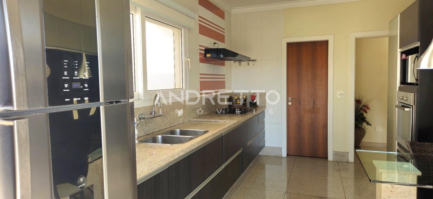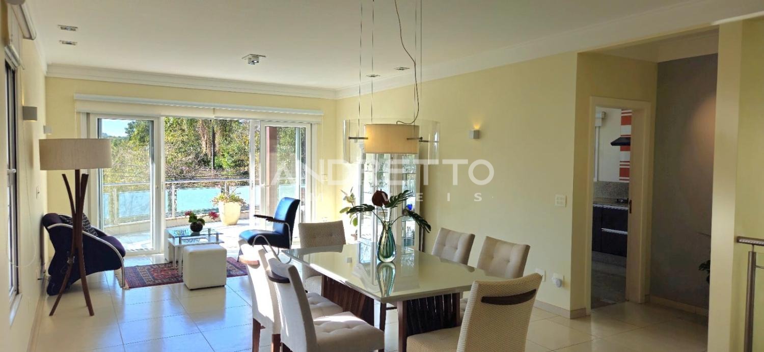 Ambientes integrados entre as salas, varanda, espaço gourmet e cozinha, rica em armários planejados, ar condicionado em todos os ambientes, espaço gourmet com churrasqueira e com vista para área de preservação, suíte máster com closet, pia com cuba dupla e banheira de hidromassagem para 5 pessoas, cozinha toda planejada com copa e despensa, ampla lavanderia, aquecimento solar para água, portas e janelas em PVC, janelas automatizadas e com tela mosqueteira, escada com guarda corpo em vidro e em aço inox, piso em porcelanato, alarme, garagem para 6 veículos sendo 3 cobertas.
