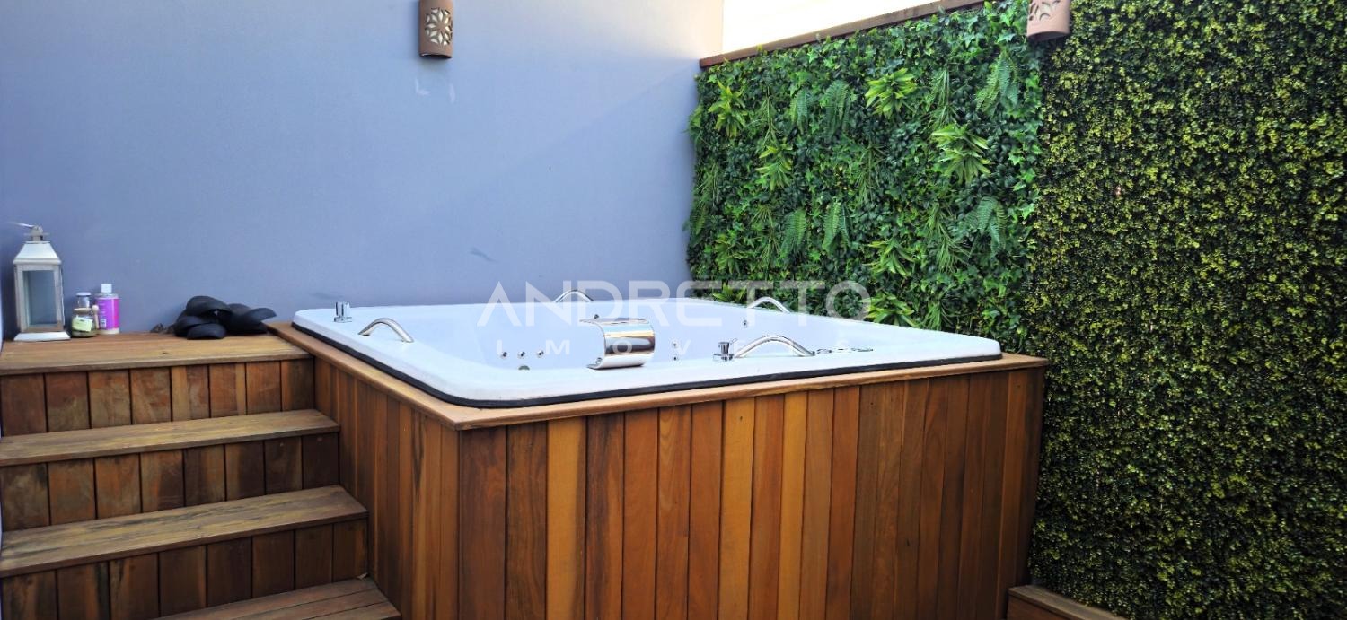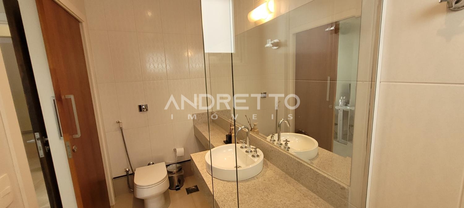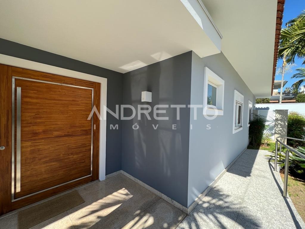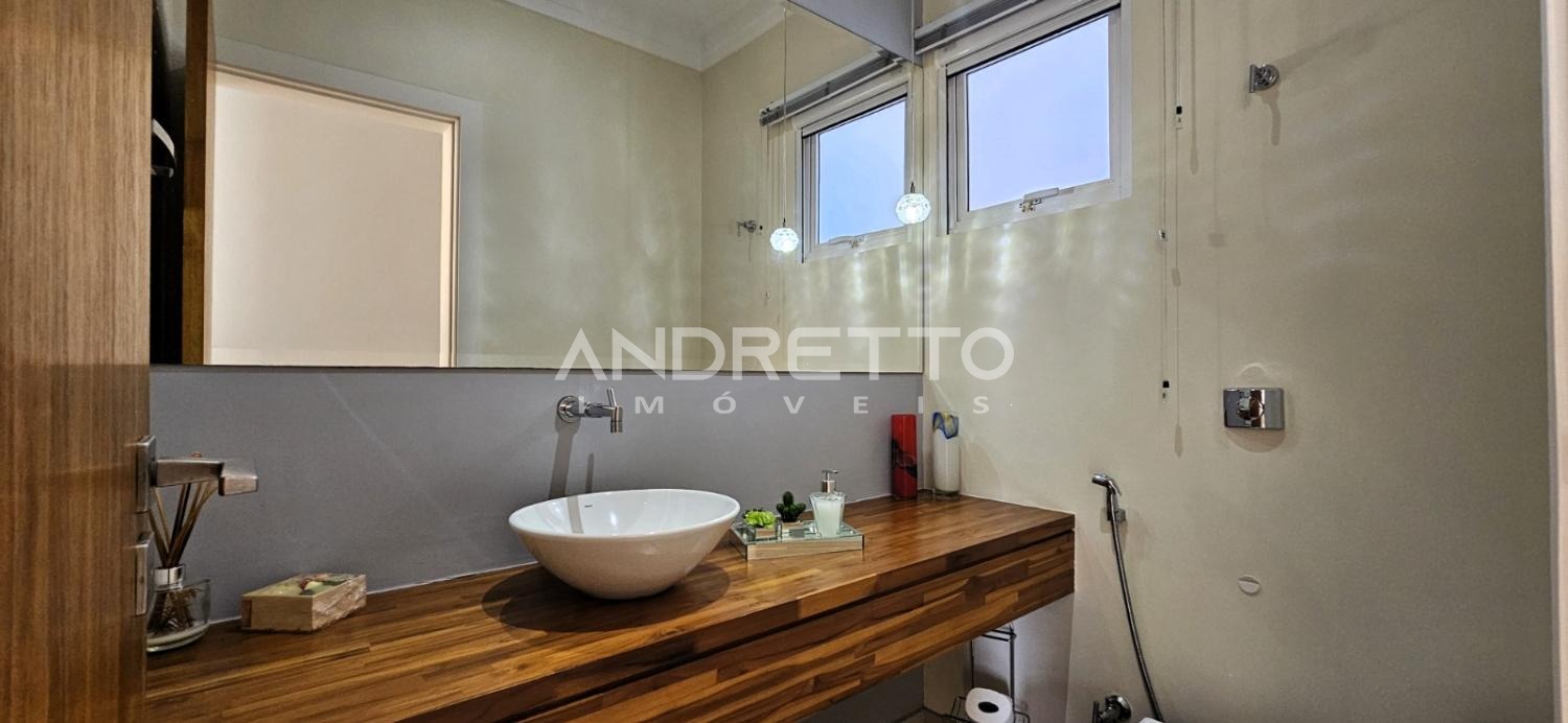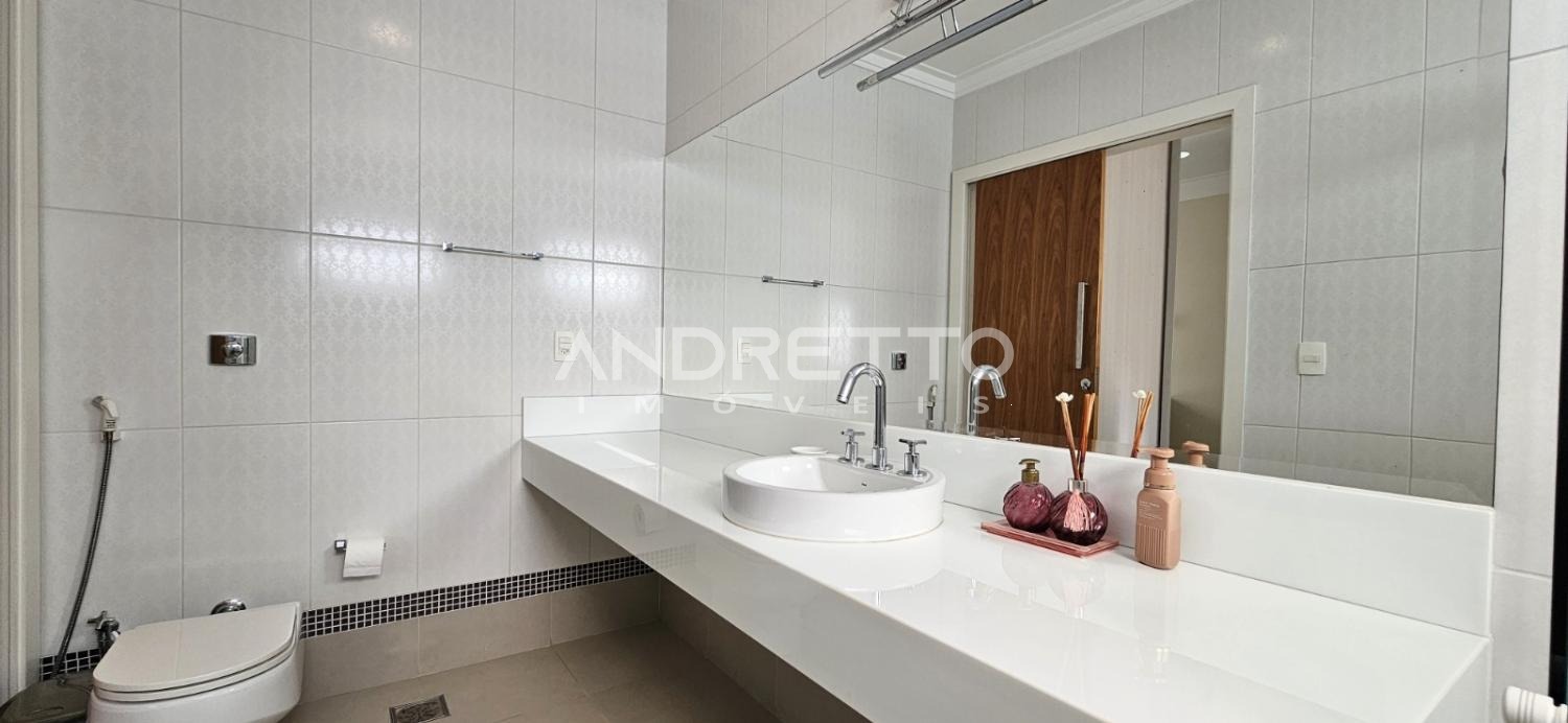 Ambientes integrados entre as salas, varanda, espaço gourmet e cozinha, rica em armários planejados, ar condicionado em todos os ambientes, espaço gourmet com churrasqueira e com vista para área de preservação, suíte máster com closet, pia com cuba dupla e banheira de hidromassagem para 5 pessoas, cozinha toda planejada com copa e despensa, ampla lavanderia, aquecimento solar para água, portas e janelas em PVC, janelas automatizadas e com tela mosqueteira, escada com guarda corpo em vidro e em aço inox, piso em porcelanato, alarme, garagem para 6 veículos sendo 3 cobertas.