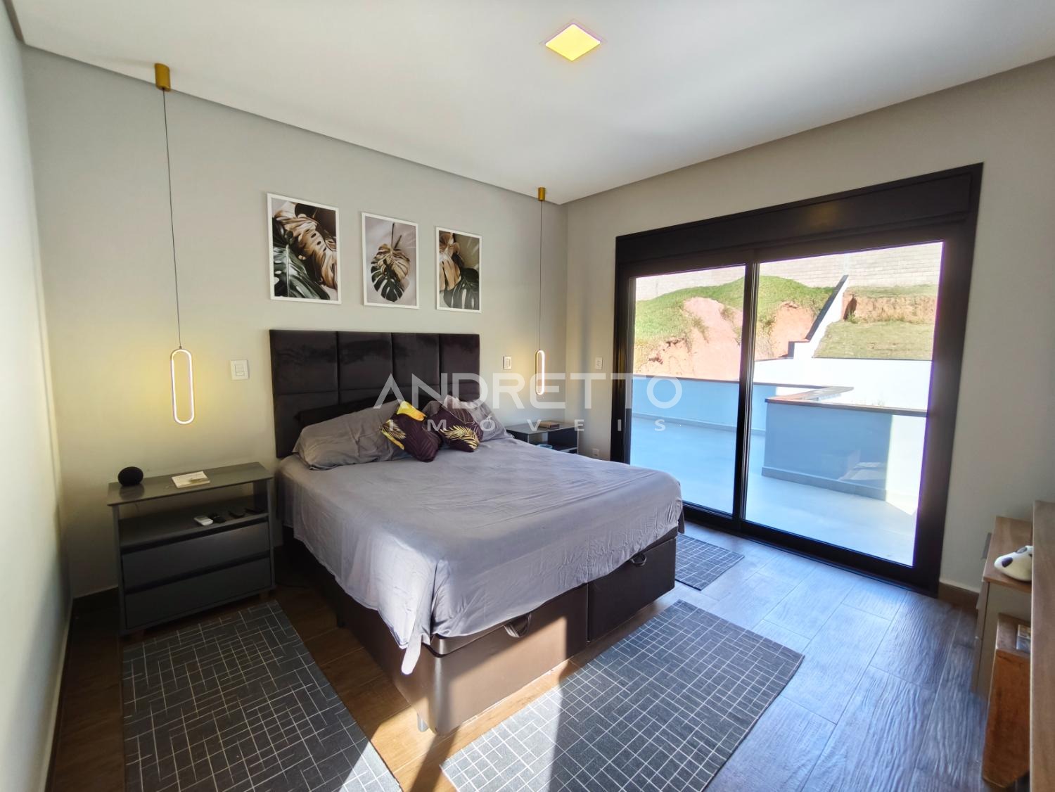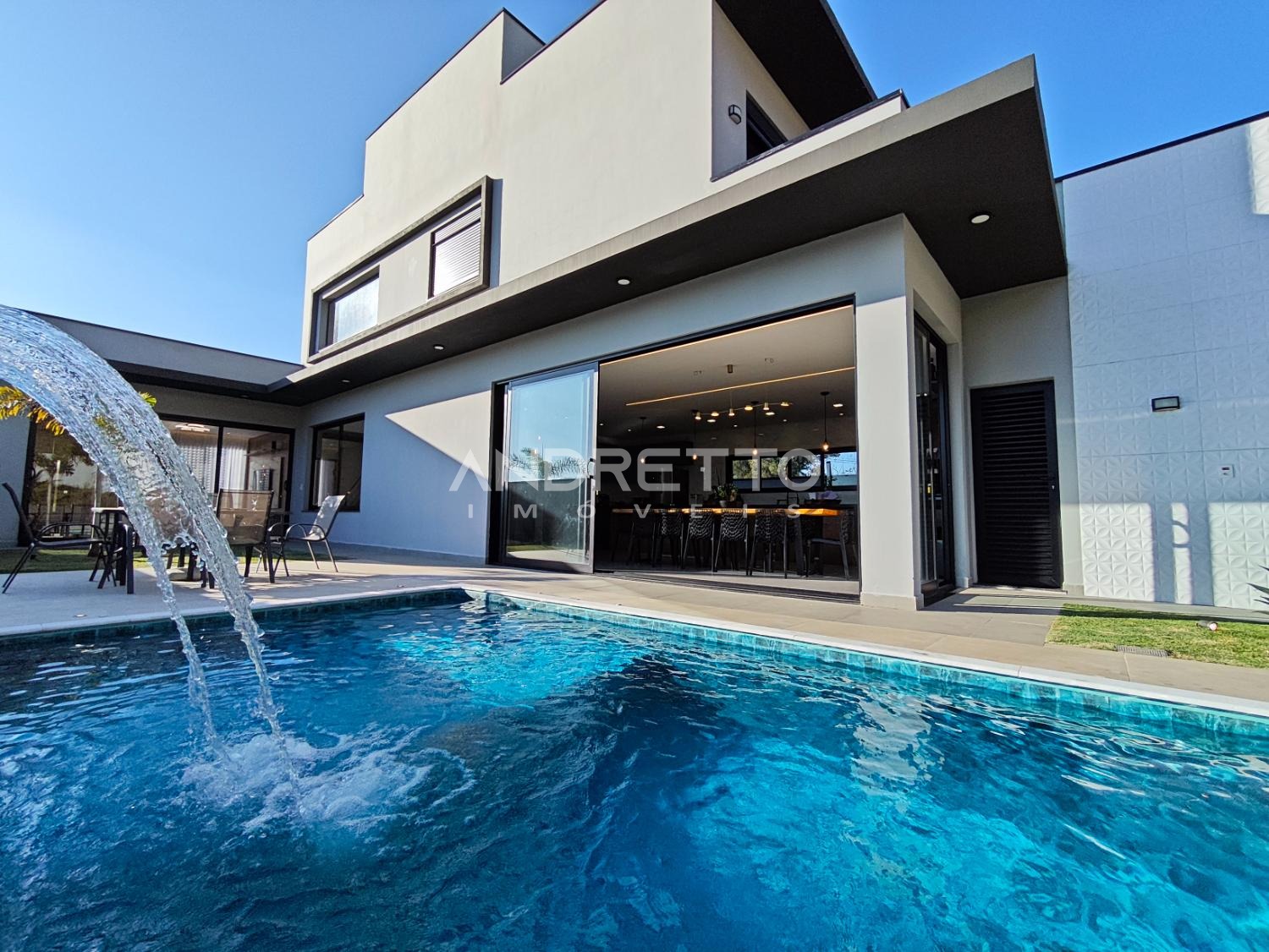 São três suítes, sendo a principal um verdadeiro refúgio, com closet espaçoso, persianas automatizadas e ar-condicionado já instalado. O imóvel conta ainda com um amplo escritório climatizado, perfeito para quem trabalha de casa. Todos os demais ambientes foram preparados com infraestrutura completa para ar-condicionado, oferecendo comodidade para quem deseja instalar facilmente. Ao todo, são cinco banheiros, distribuídos entre as suítes, um lavabo e um externo. A garagem comporta até seis veículos, três deles em área coberta, e ao lado há um depósito que traz ainda mais funcionalidade para o dia a dia.