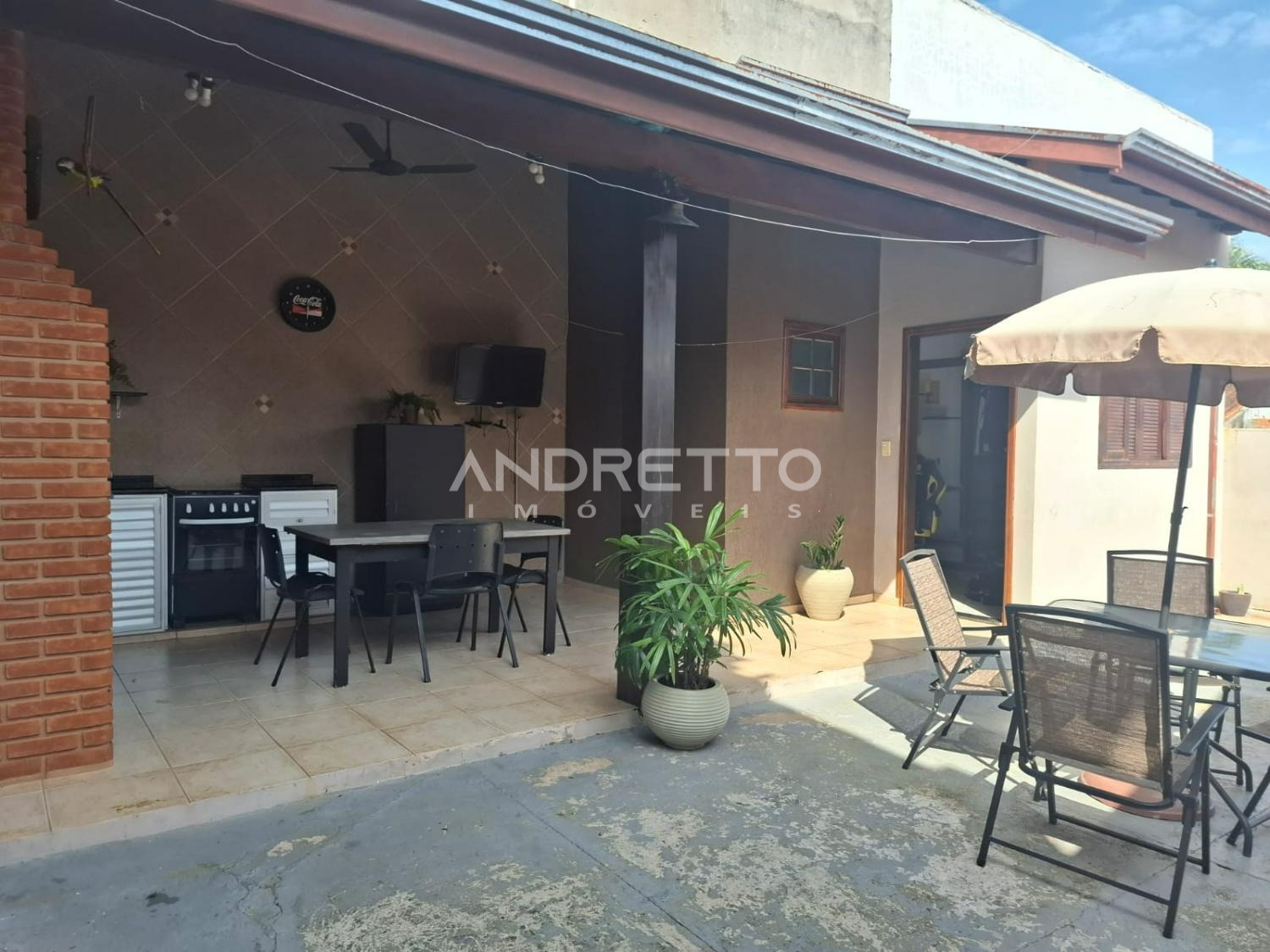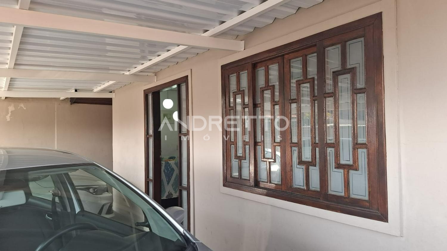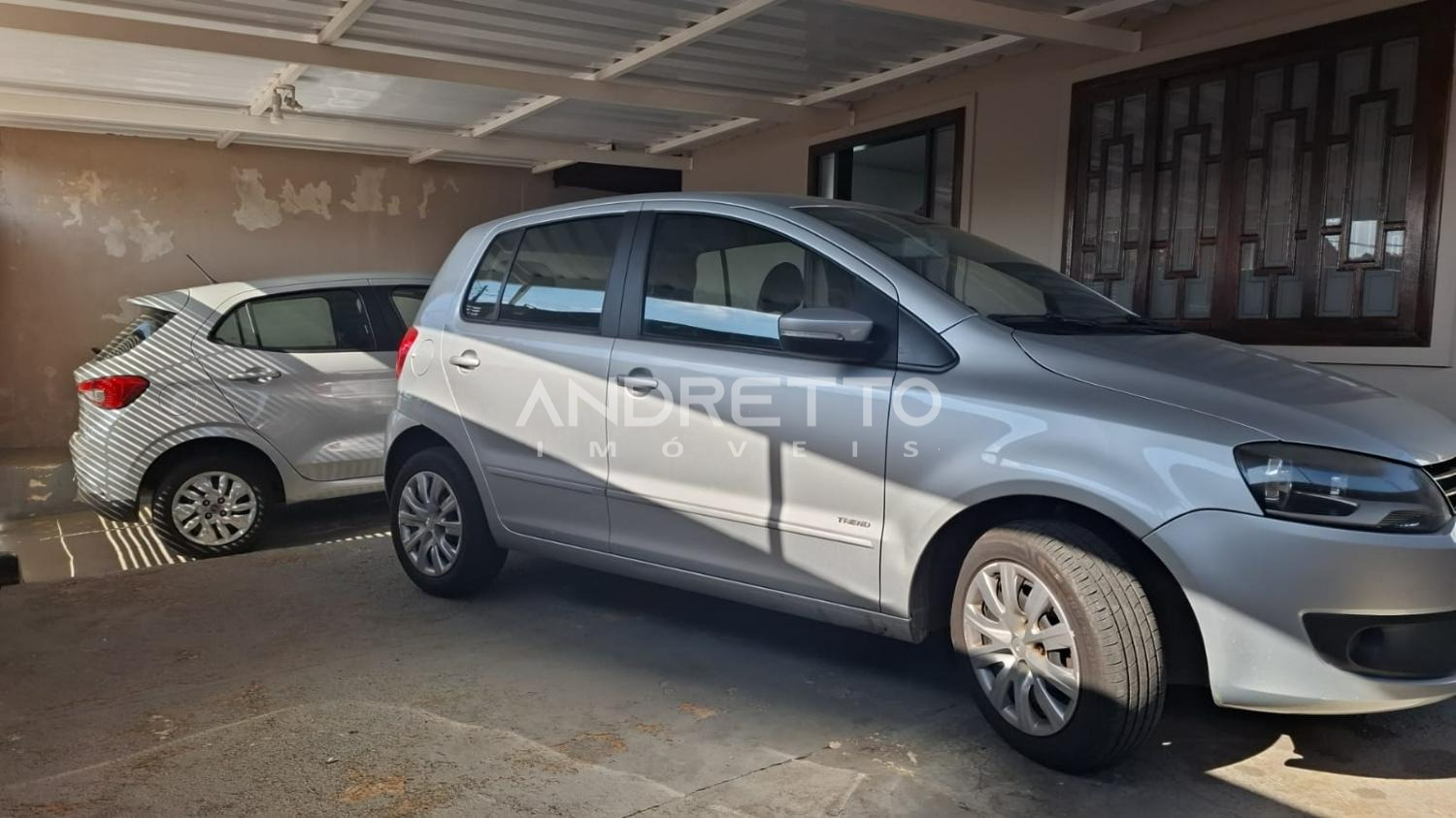 Três vagas de garagem cobertas para os carros.