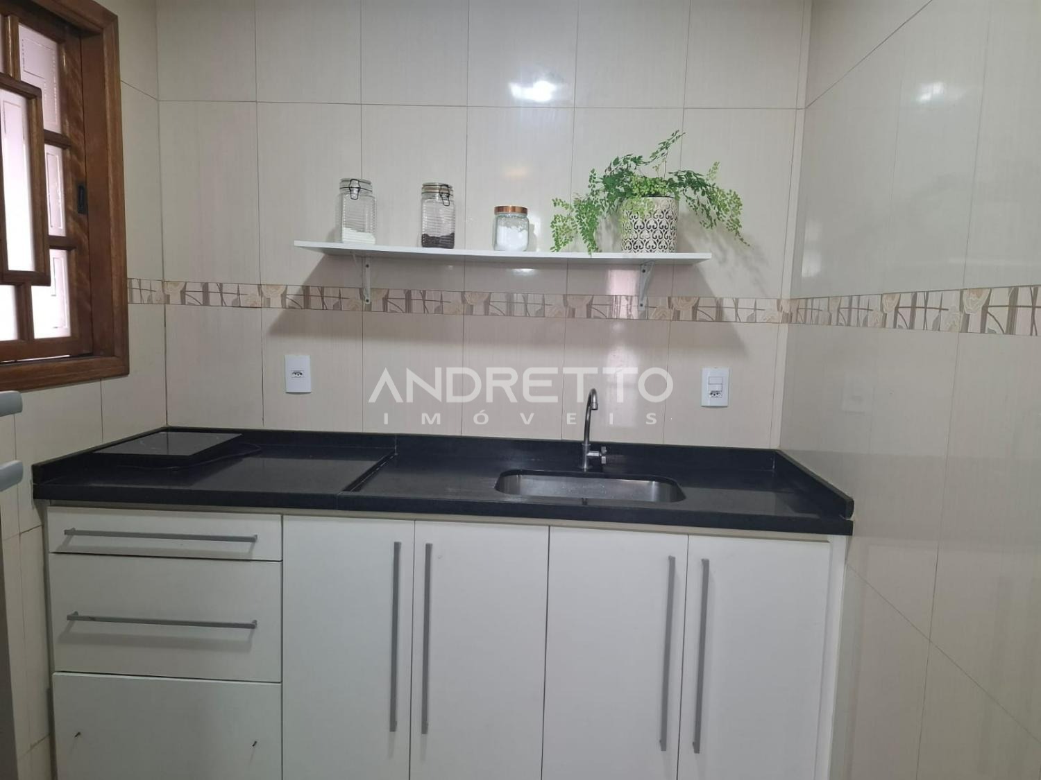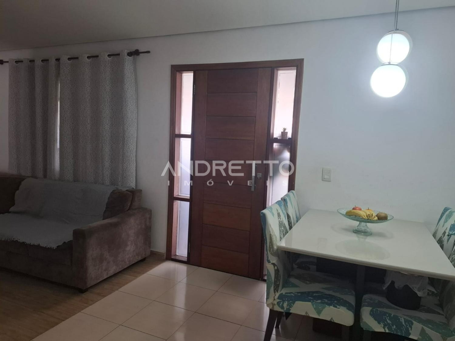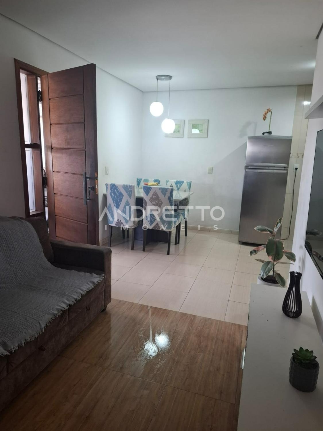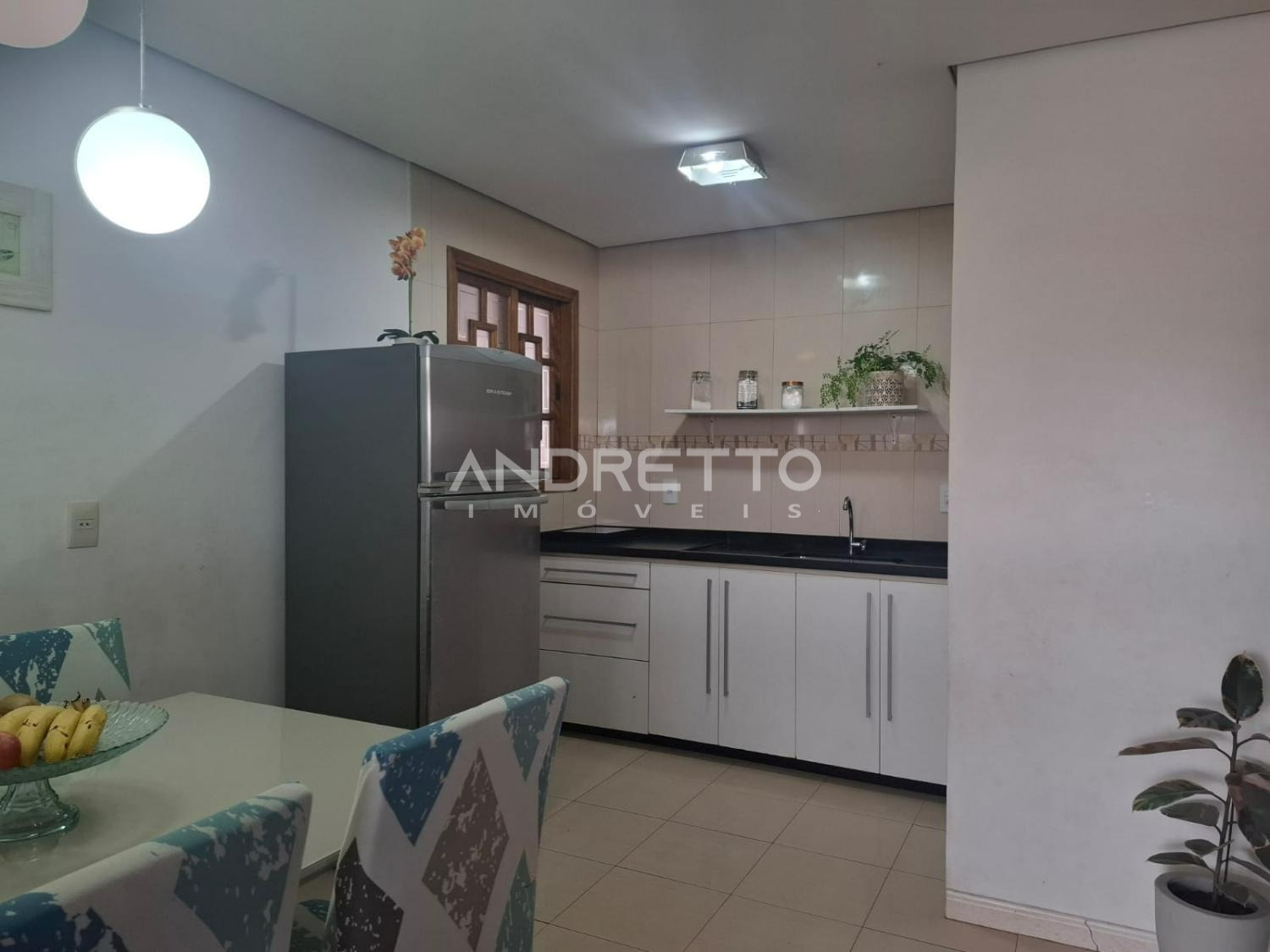 Casa térrea de 120 m² de área construída, dois quartos, dois banheiros, área gourmet, ampla sala integrada a cozinha.