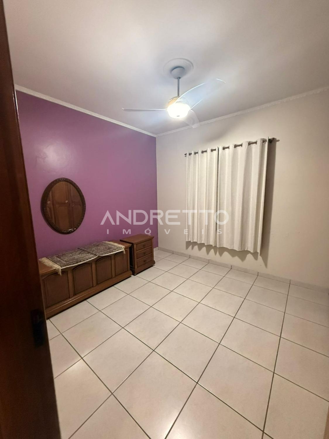 Casa de 235 m² em um terreno de 300 m² de três quartos, sendo um deles uma suíte com ar condicionado, armários planejados e nos outros quartos com ventiladores de teto, banheiro social com box e armários.