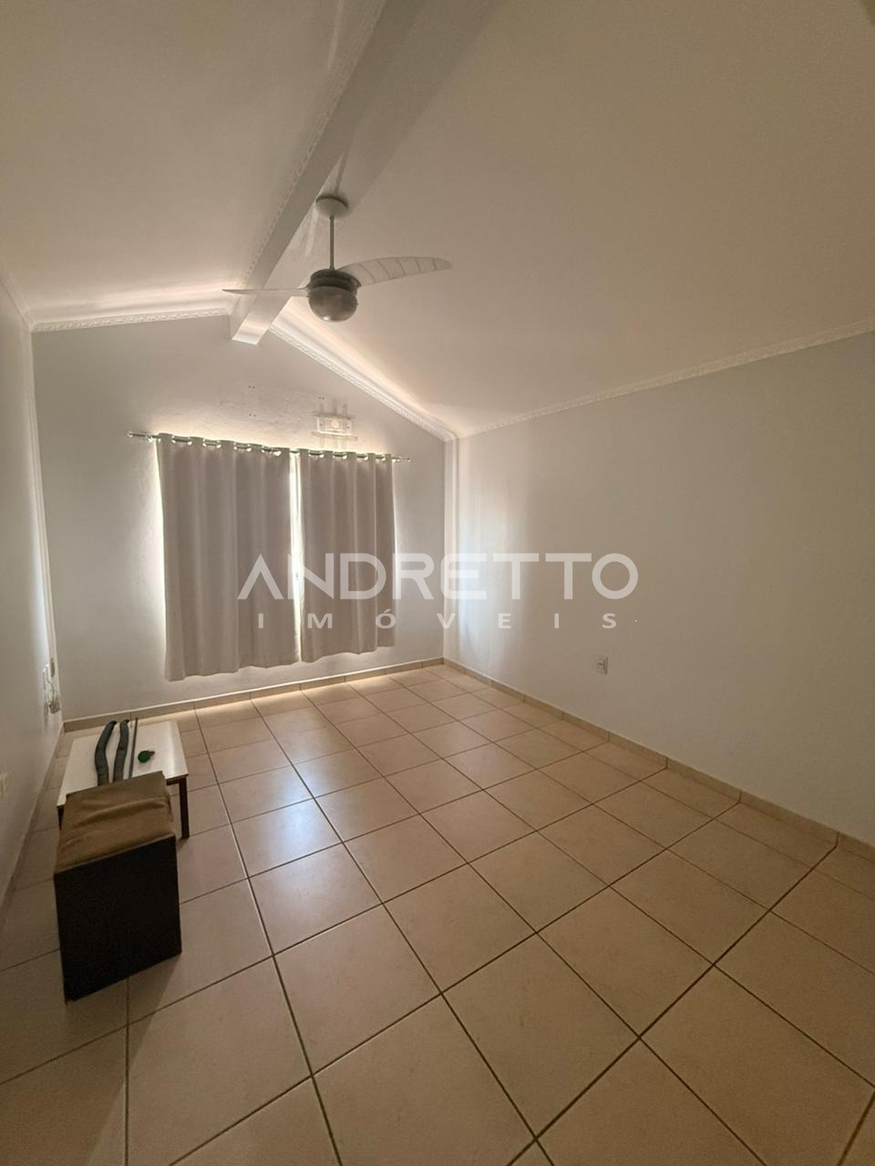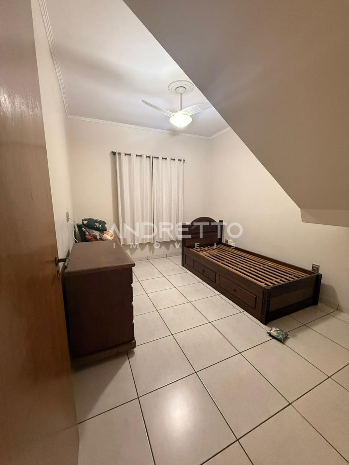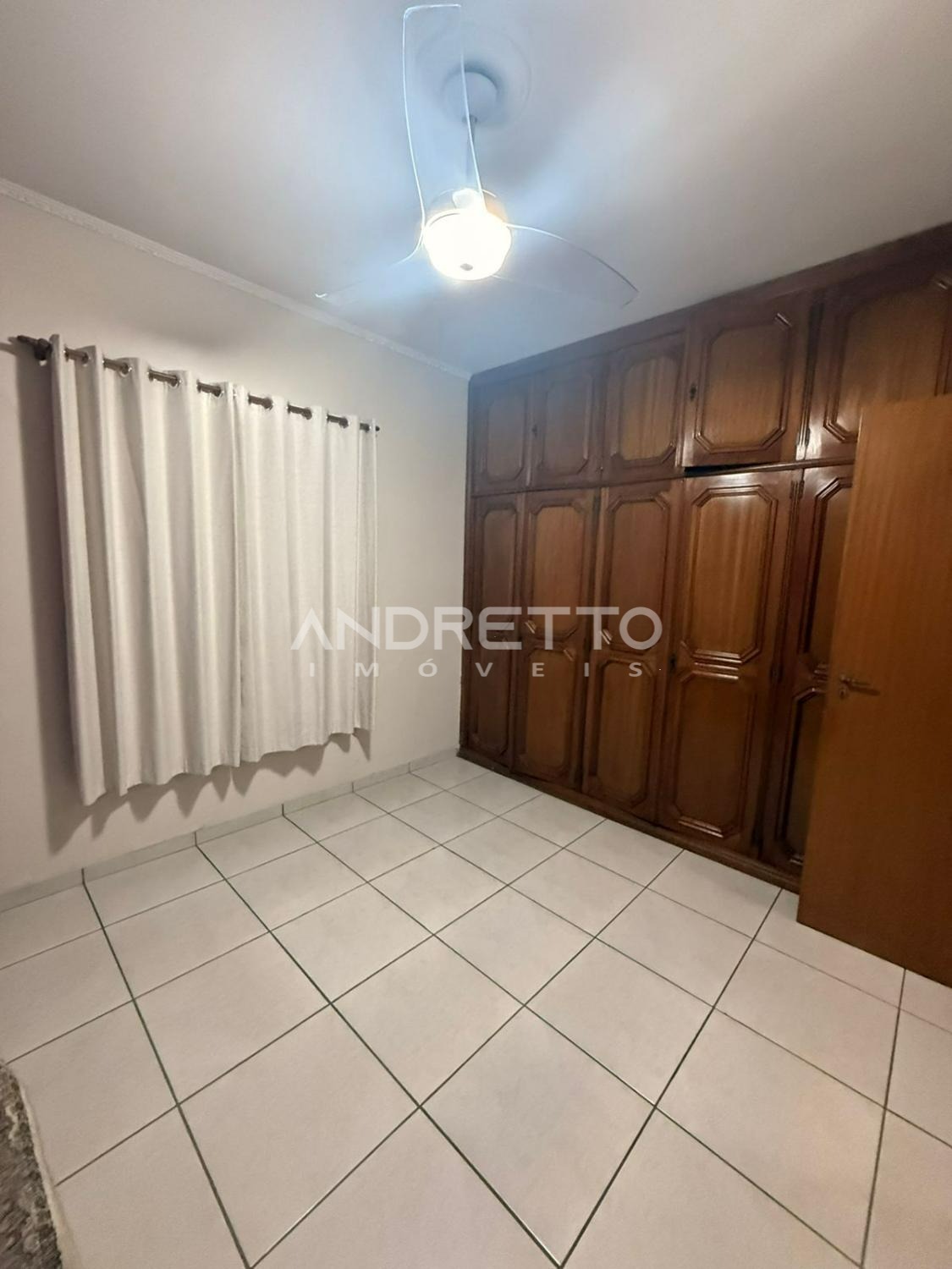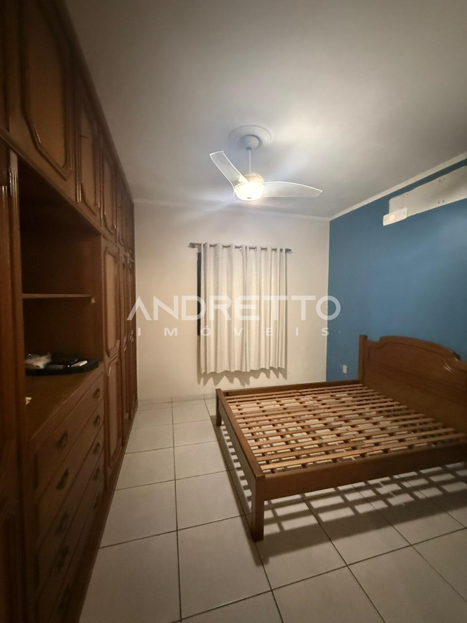 Casa de 235 m² em um terreno de 300 m² de três quartos, sendo um deles uma suíte com ar condicionado, armários planejados e nos outros quartos com ventiladores de teto, banheiro social com box e armários.