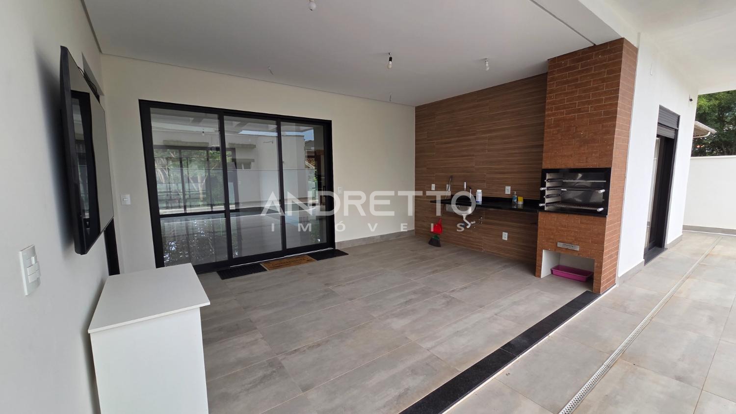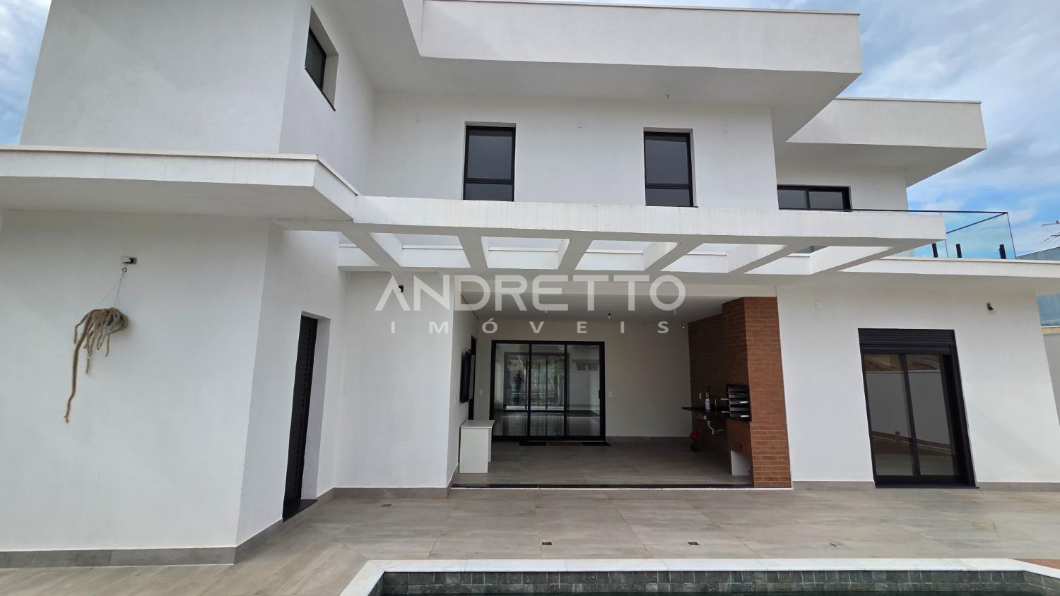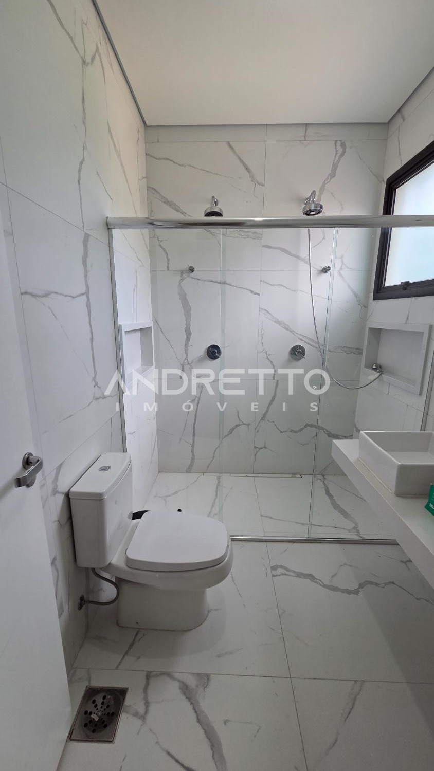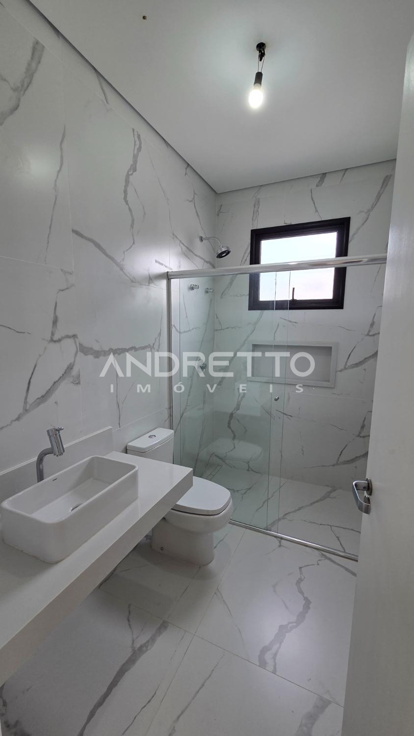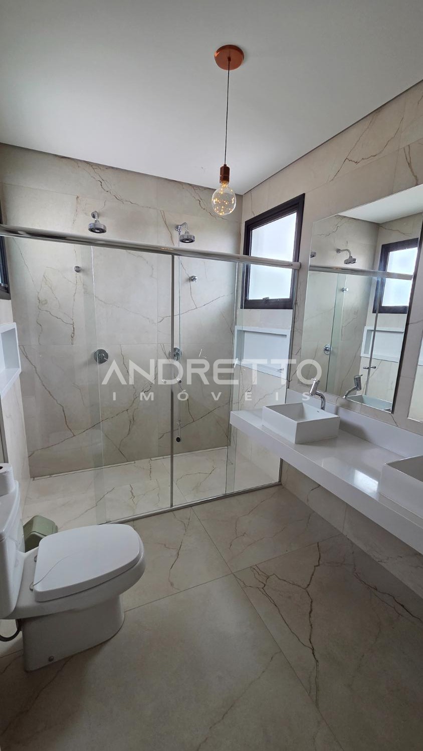 Sobrado de arquitetura moderna, com excelente distribuição dos ambientes. No térreo, conta com 02 suítes, lavabo, sala de estar e sala de jantar integradas, proporcionando amplitude e funcionalidade, além de integração total com a área gourmet, equipada com churrasqueira e acesso à piscina. A frente da casa é voltada para área verde, garantindo mais privacidade e contato com a natureza.