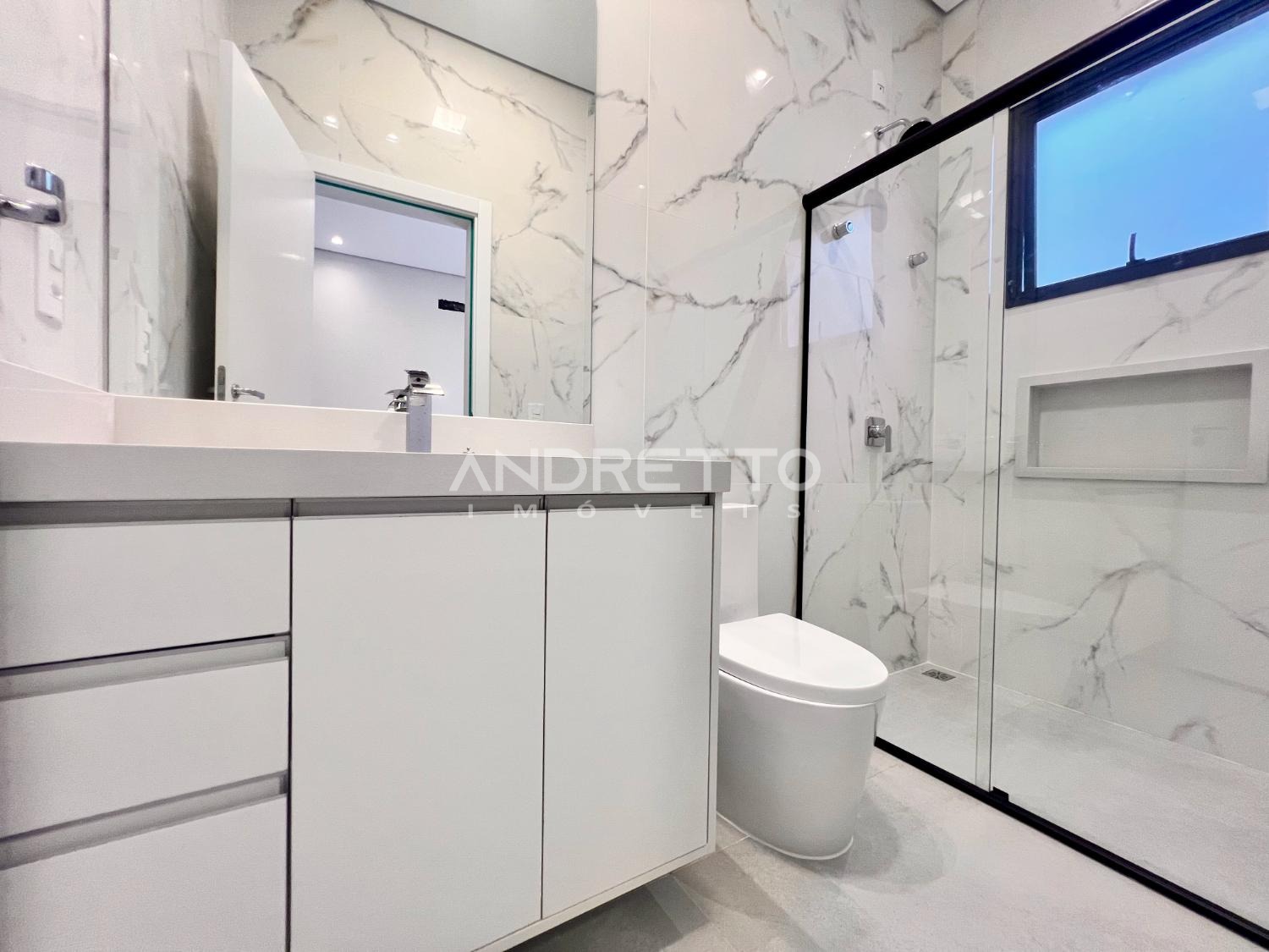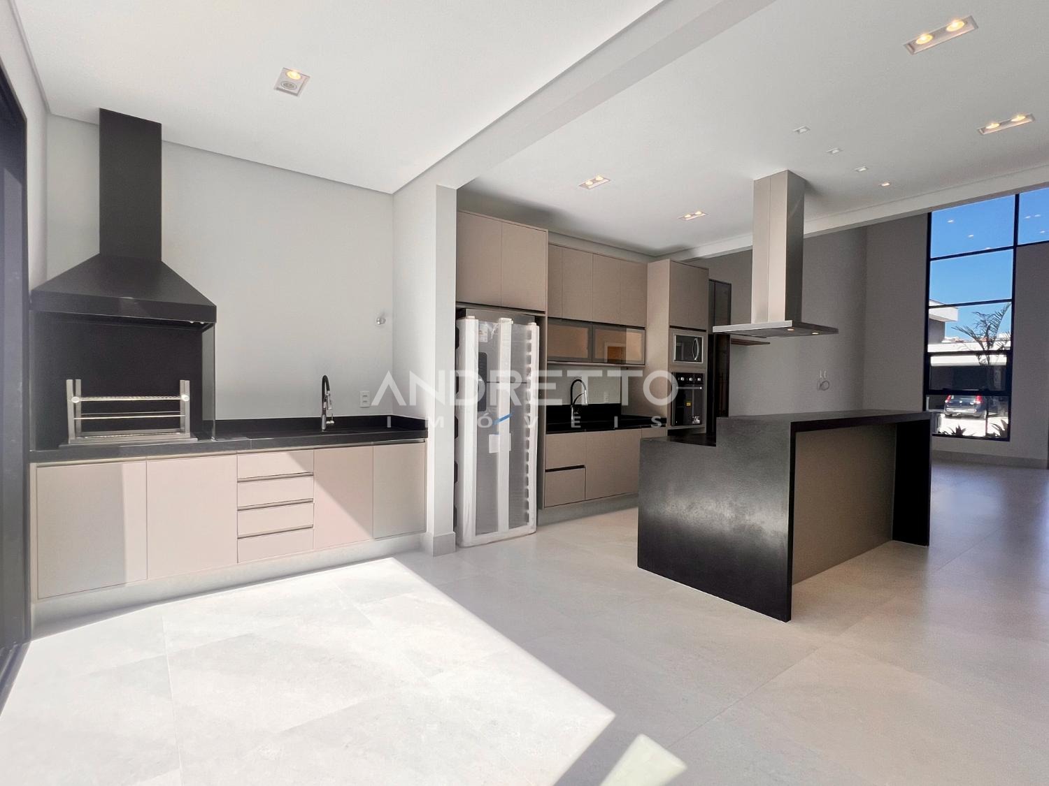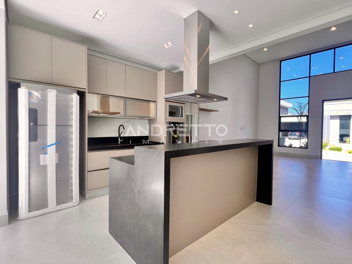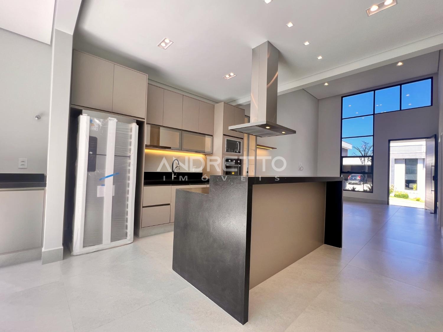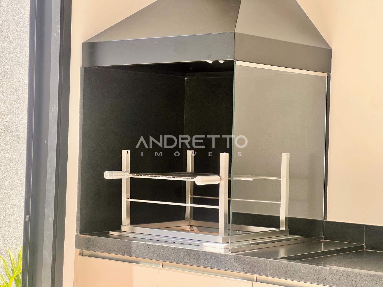 3 suítes sendo uma máster todas com armários planejados e persianas automatizadas, banheiros com armário, box e espelhos, escritório, cozinha moderna e planejada e equipada com: geladeira, forno elétrico, micro-ondas, cooktop, coifa e despensa.